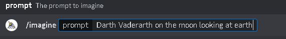 When writing a prompt, keep it simple and straightforward by expressing your thoughts and emotions without using complex language or excessive descriptions. Midjourney will generate an impressive image result based on your text (prompt) input. For instance, you can write something like “Darth Vaderarth on the moon looking at earth“.